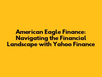 Hey everyone! Let's dive into the world of American Eagle Finance and how we can get a better handle on things using Yahoo Finance. We're going to break down some crucial aspects of financial management, making it easier to understand and apply to your own life. This isn't just about stocks and bonds, although we'll touch on those too. It's about building a solid financial foundation and making informed decisions. So, grab your favorite beverage, get comfy, and let's get started. We'll explore various facets, from understanding market trends to making smart investment choices. This will also give you an overview of how American Eagle Finance works alongside the resources offered by Yahoo Finance, helping you navigate the complexities of financial markets with confidence.