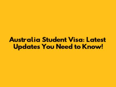 Australia Student Visa: Latest Updates You Need To Know!