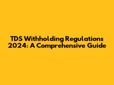 TDS Withholding Regulations 2024: A Comprehensive Guide