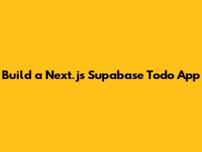 Build A Next.js Supabase Todo App