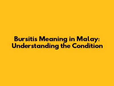 Bursitis Meaning In Malay: Understanding The Condition