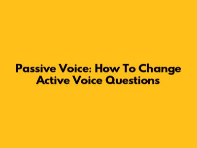 Passive Voice: How To Change Active Voice Questions