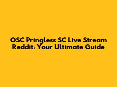 OSC Pringless SC Live Stream Reddit: Your Ultimate Guide