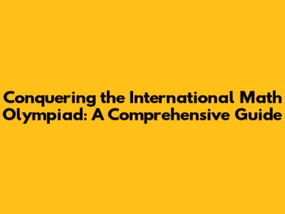 Conquering The International Math Olympiad: A Guide