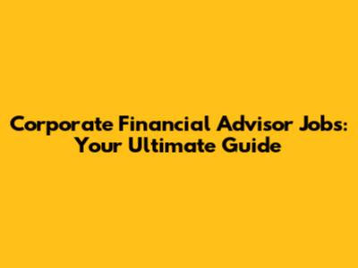 Corporate Financial Advisor Jobs: A Comprehensive Guide
