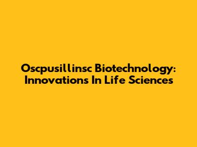 Oscpusillinsc Biotechnology: Innovations In Life Sciences