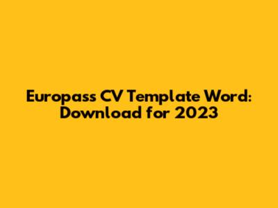 Europass CV Template Word: Download For 2023