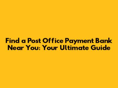 Find A Post Office Payment Bank Near You!