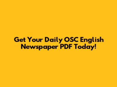 Get Your Daily OSC English Newspaper PDF Today!