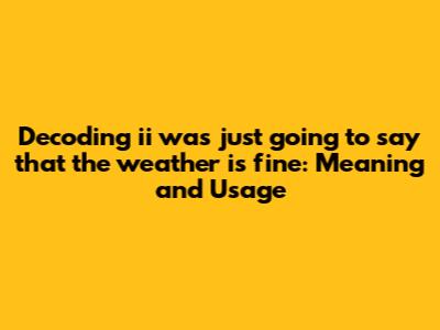 Have you ever stumbled upon the phrase "ii was just going to say that the weather is fine" and wondered what it means? Well, you're not alone! This seemingly simple sentence carries a nuanced meaning and can be used in various contexts. Let's dive deep into understanding its implications and how to use it effectively.
