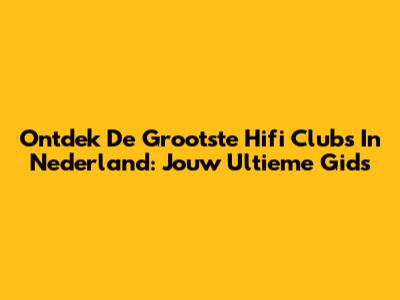 Ontdek De Grootste Hifi Clubs In Nederland: Jouw Ultieme Gids