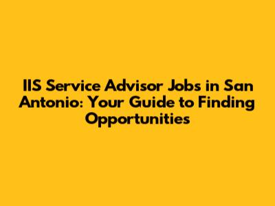 Finding IIS service advisor jobs in San Antonio requires a combination of skills, qualifications, and strategic job search techniques. By understanding the role, developing essential skills, utilizing online job boards, networking, and crafting a compelling resume and cover letter, you can increase your chances of landing a great job in this thriving automotive market. Remember to prepare for the interview, understand salary expectations, and continue to invest in your professional development to stay ahead in your career. With dedication and perseverance, you can achieve your career goals as an IIS service advisor in San Antonio.