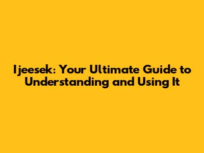 Ijeesek: Your Guide To Understanding And Using It