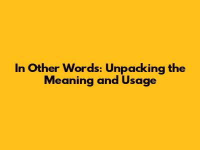 In Other Words: Unpacking The Meaning And Usage