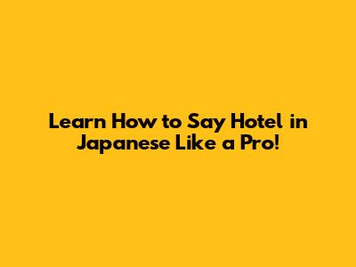 Learn How To Say 'Hotel' In Japanese Like A Pro!