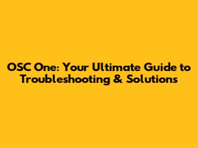 OSC One: Your Ultimate Guide To Troubleshooting & Solutions