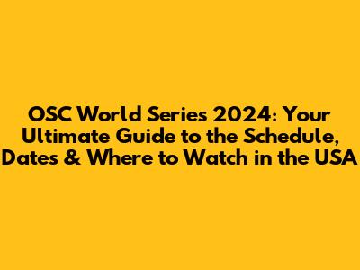 OSC World Series 2024: Schedule, Dates & Where To Watch In The USA