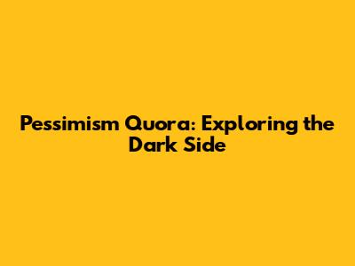 Pessimism Quora: Exploring The Dark Side