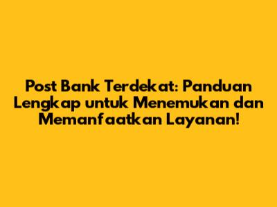 Hai, guys! Pernahkah kalian berada dalam situasi di mana kalian membutuhkan layanan perbankan dari Post Bank, tetapi tidak tahu di mana lokasi terdekatnya? Jangan khawatir! Artikel ini hadir untuk membantu kalian menemukan Post Bank terdekat, sekaligus memberikan informasi lengkap mengenai layanan yang tersedia. Jadi, simak terus ya!