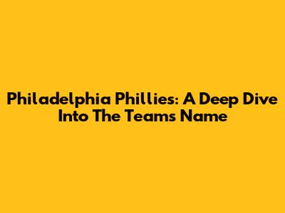 Philadelphia Phillies: A Deep Dive Into The Team's Name