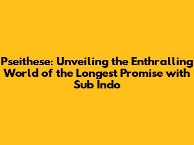 So, there you have it, folks! Pseithese and The Longest Promise are a must-watch for any anime lover. With its captivating storyline, stunning visuals, and memorable characters, you're sure to fall in love with this series. And with Sub Indo, you can fully immerse yourself in the experience and appreciate every moment.