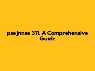 Psejnnse 311: A Comprehensive Guide