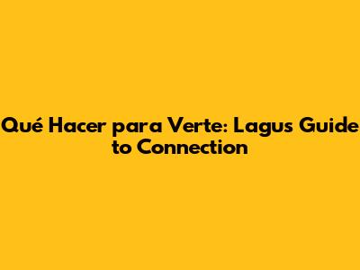 Qué Hacer Para Verte: Lagu's Guide To Connection