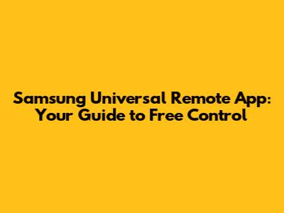 Samsung Universal Remote App: Your Guide To Free Control