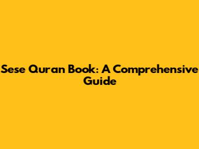 Sese Quran Book: A Comprehensive Guide
