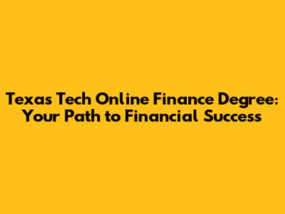 Texas Tech Online Finance Degree: Your Path To Financial Success