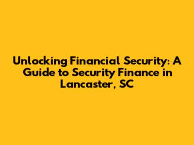 Unlocking Financial Security: A Guide To Security Finance In Lancaster, SC