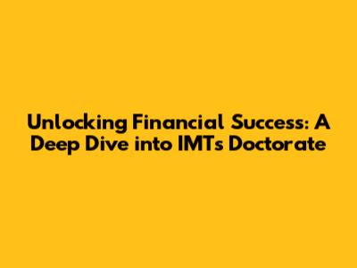 Hey guys! Ever wondered about the secrets behind successful financial strategies? Or maybe you're aiming to take your finance career to the next level? Well, you're in the right place! We're diving deep into the world of finance, specifically looking at how a doctorate from IMT can be your golden ticket. Let's break it down, making it easy to understand, even if you're not a finance whiz. We'll cover everything from what IMT is all about, the specific doctoral programs they offer, the benefits you can expect, and how to make the most of your journey. So, buckle up, because we're about to embark on a journey towards financial mastery!