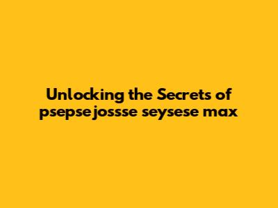 Unlocking The Secrets Of Psepsejossse Seysese Max