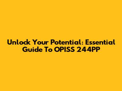 Unlock Your Potential: Essential Guide To OPISS 244PP