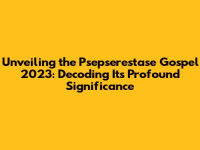 Unveiling The Psepserestase Gospel 2023: Decoding Its Profound Significance